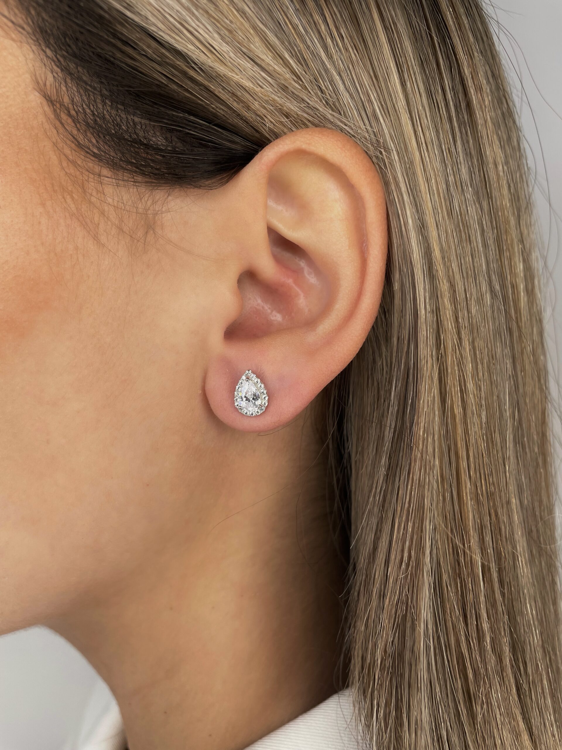 עגילי יהלומי טיפה היילו צמודים