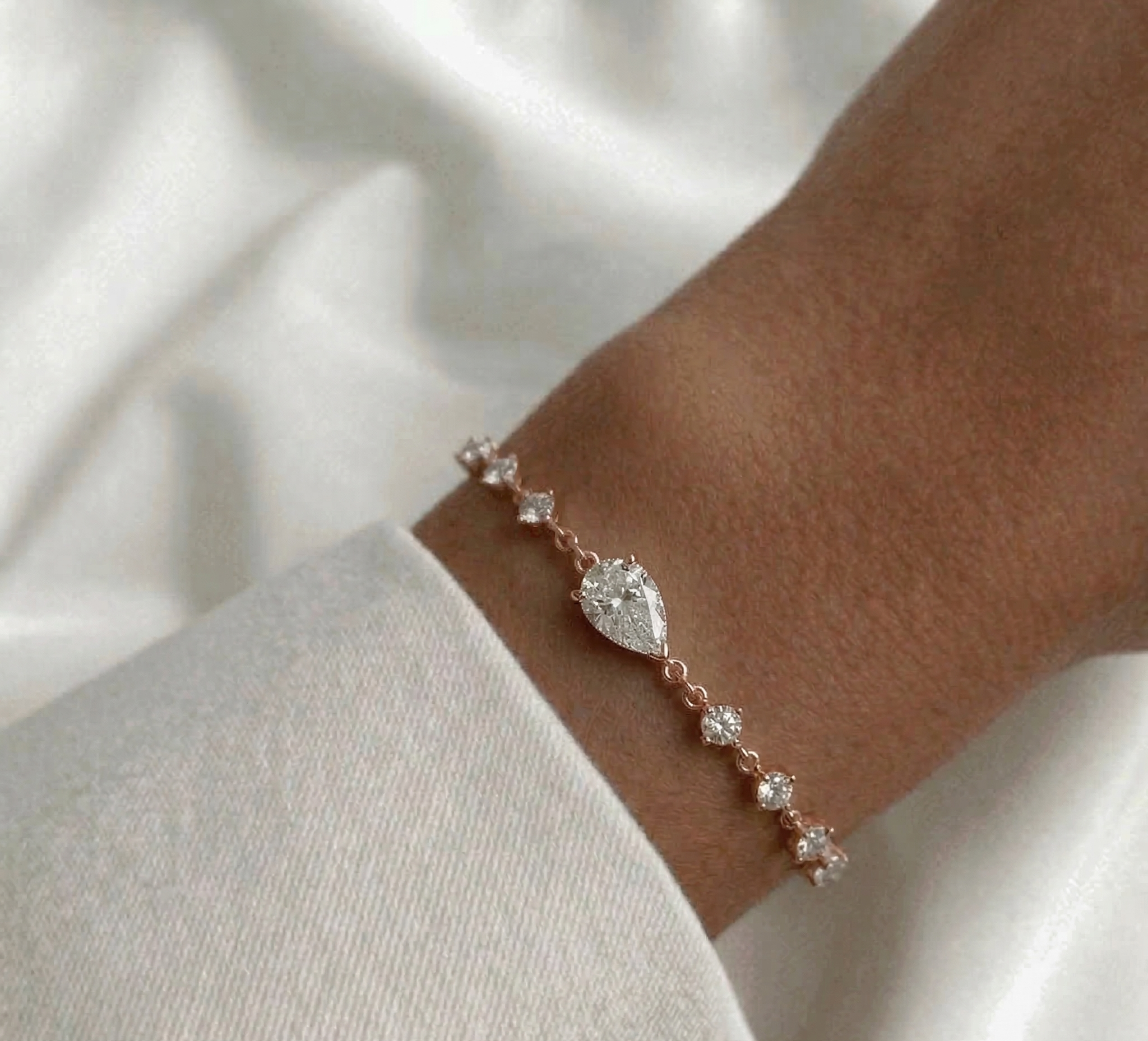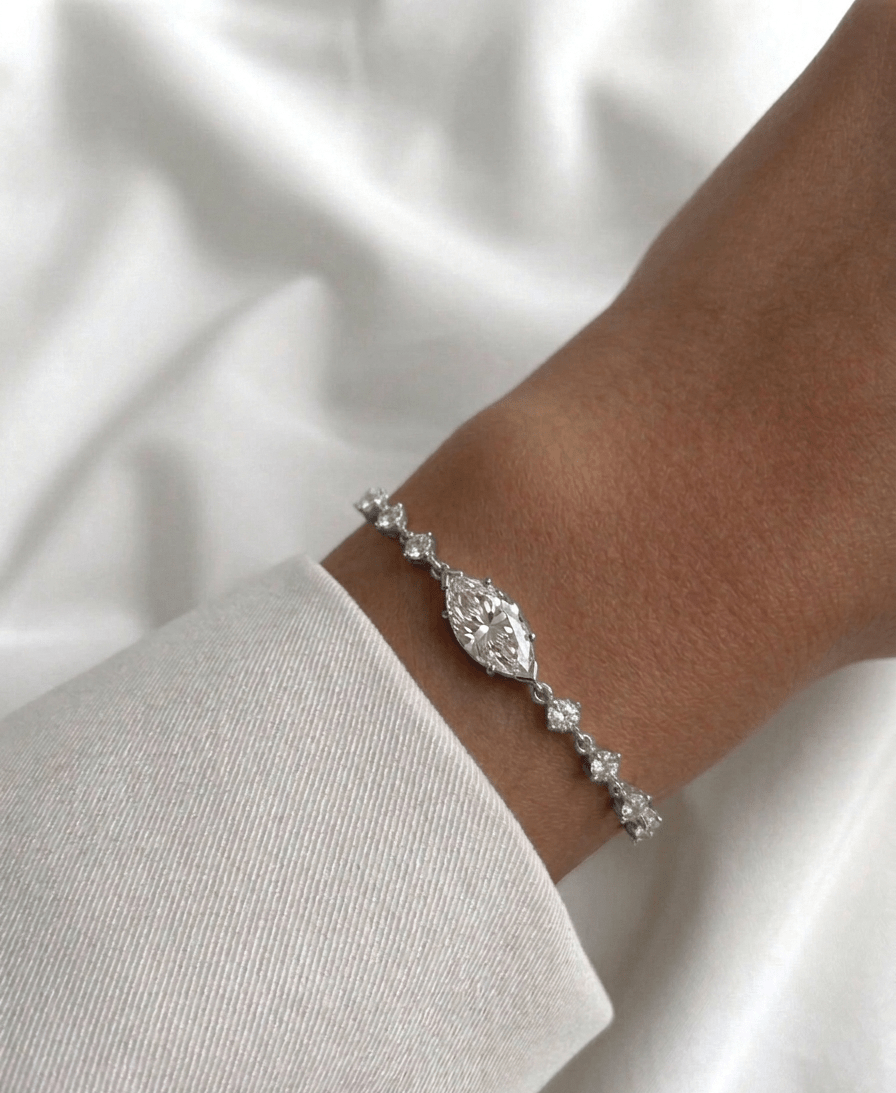צמיד יהלומים משובץ יהלום טיפה מרכזי