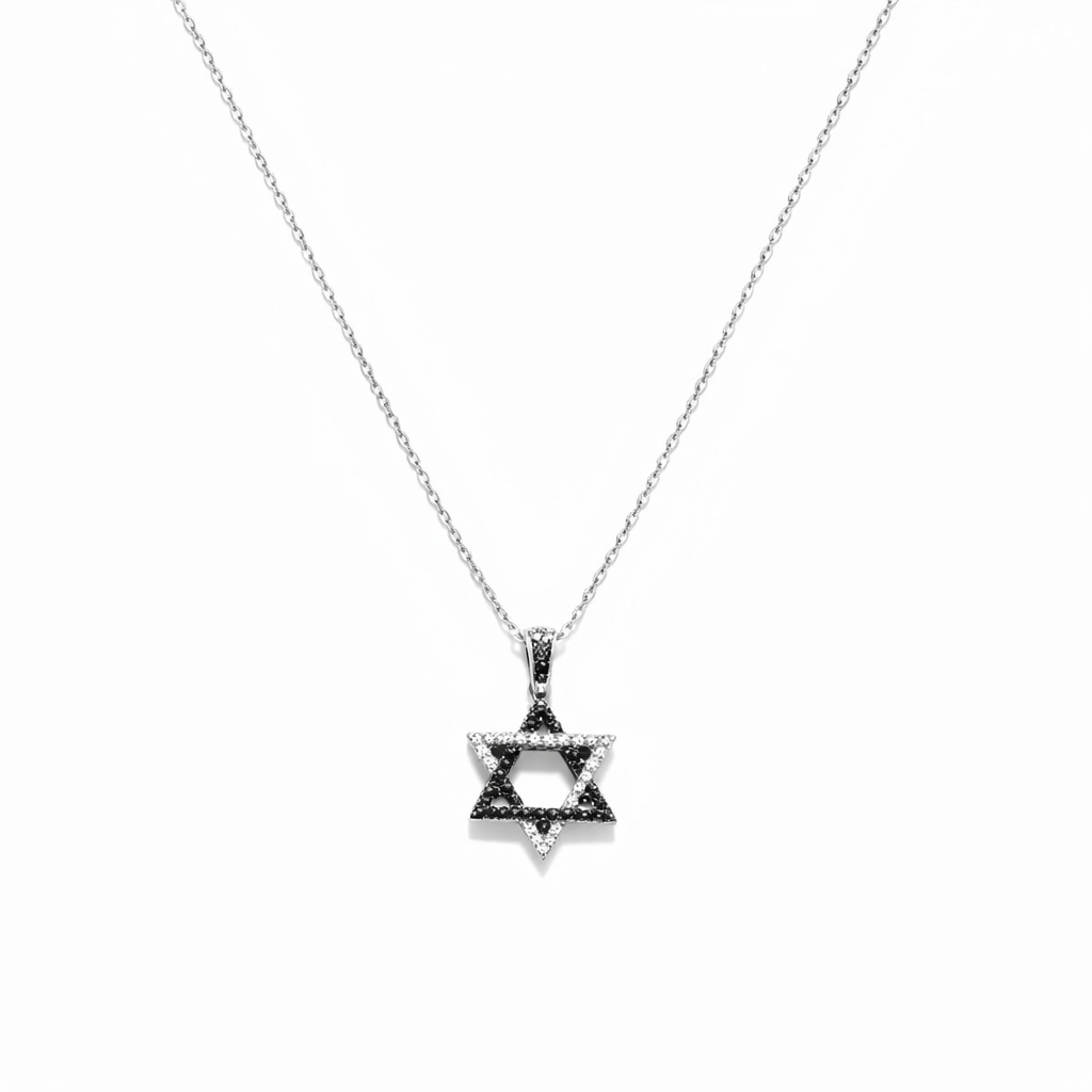 שרשרת מגן דוד משובצת יהלומים שחורים ולבנים