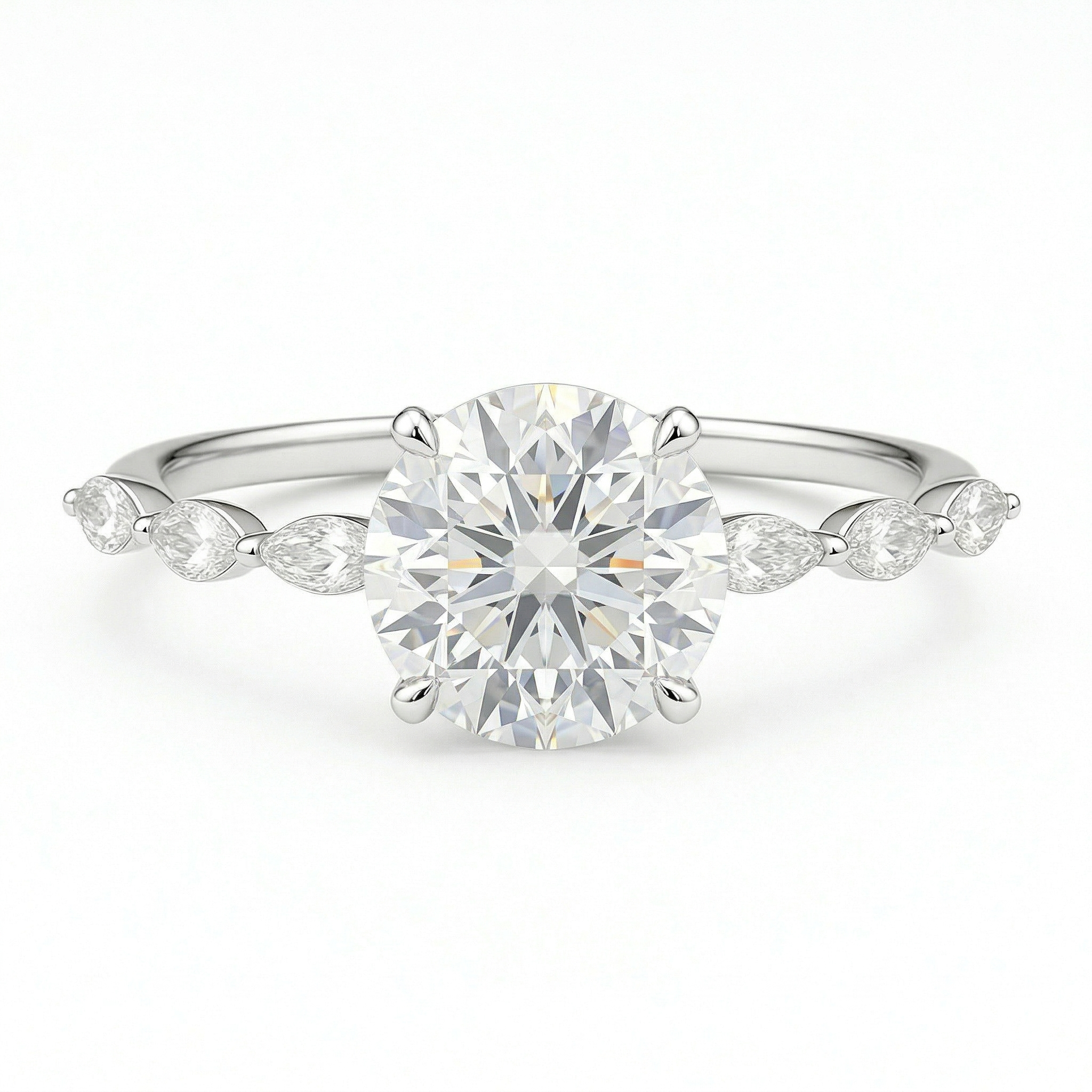 טבעת אירוסין יהלום עגול בתוספת יהלומי מרקיזה