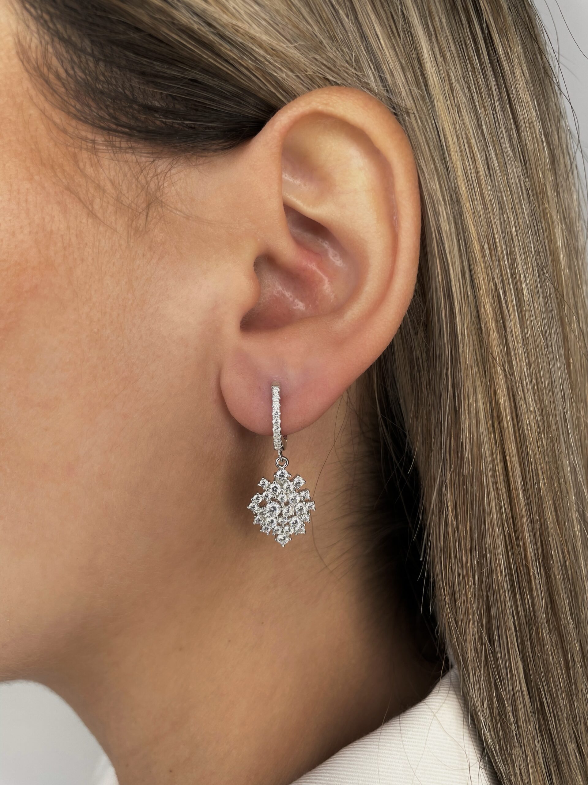 זוג עגילים בעיצוב יוקרתי וייחודי  בסגנון עלה משובצים יהלומים בגדלים שונים שיוצרים מראה א-סימיטרי ייחודי במשקל כולל של 1.05 קראט
