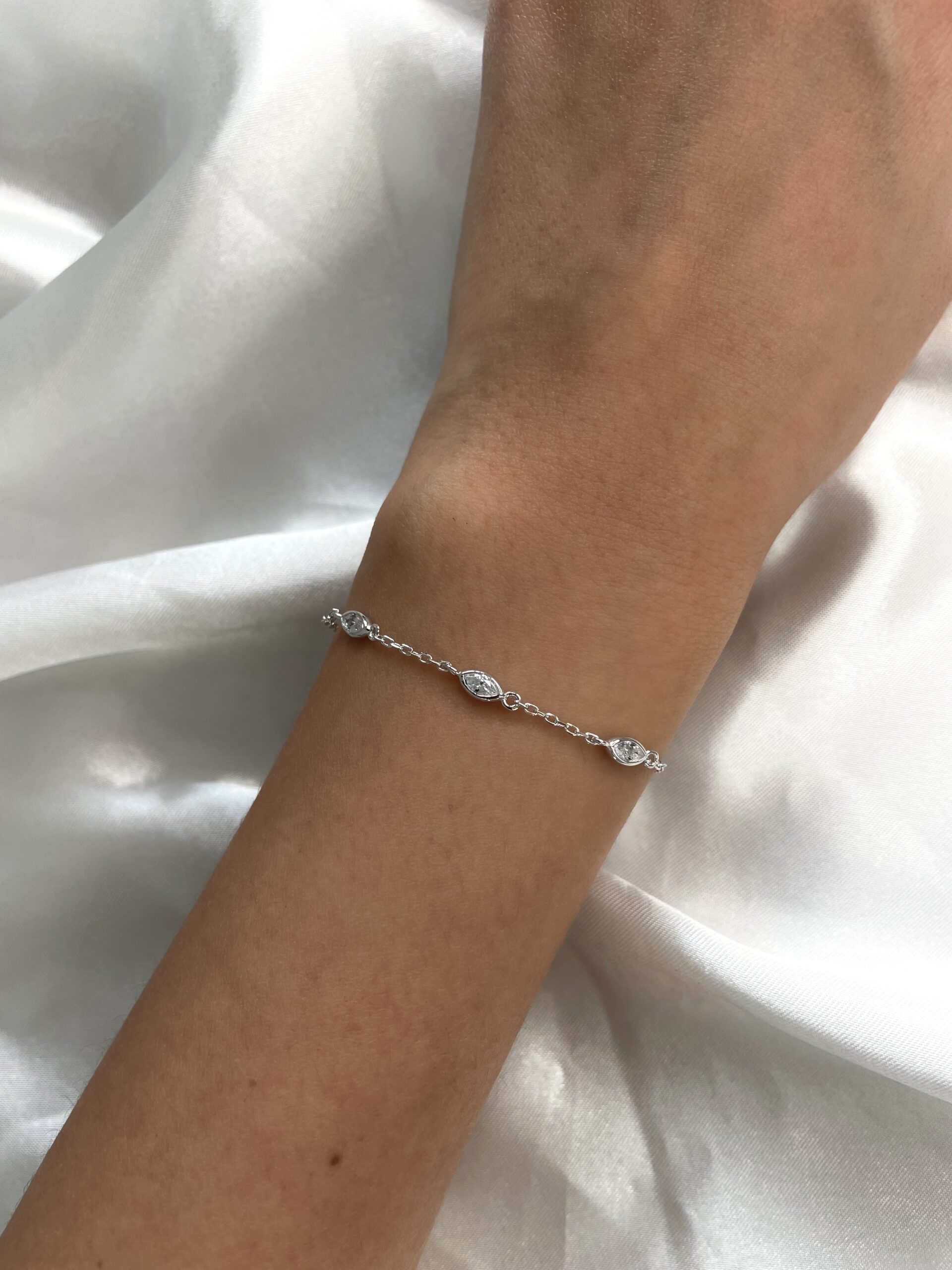 צמיד עשוי כולו זהב 14K בעיצוב יוקרתי וסגנון ייחודי של 3 יהלומי מרקיזה משובצים במשקל 0.20 קראט כל יהלום