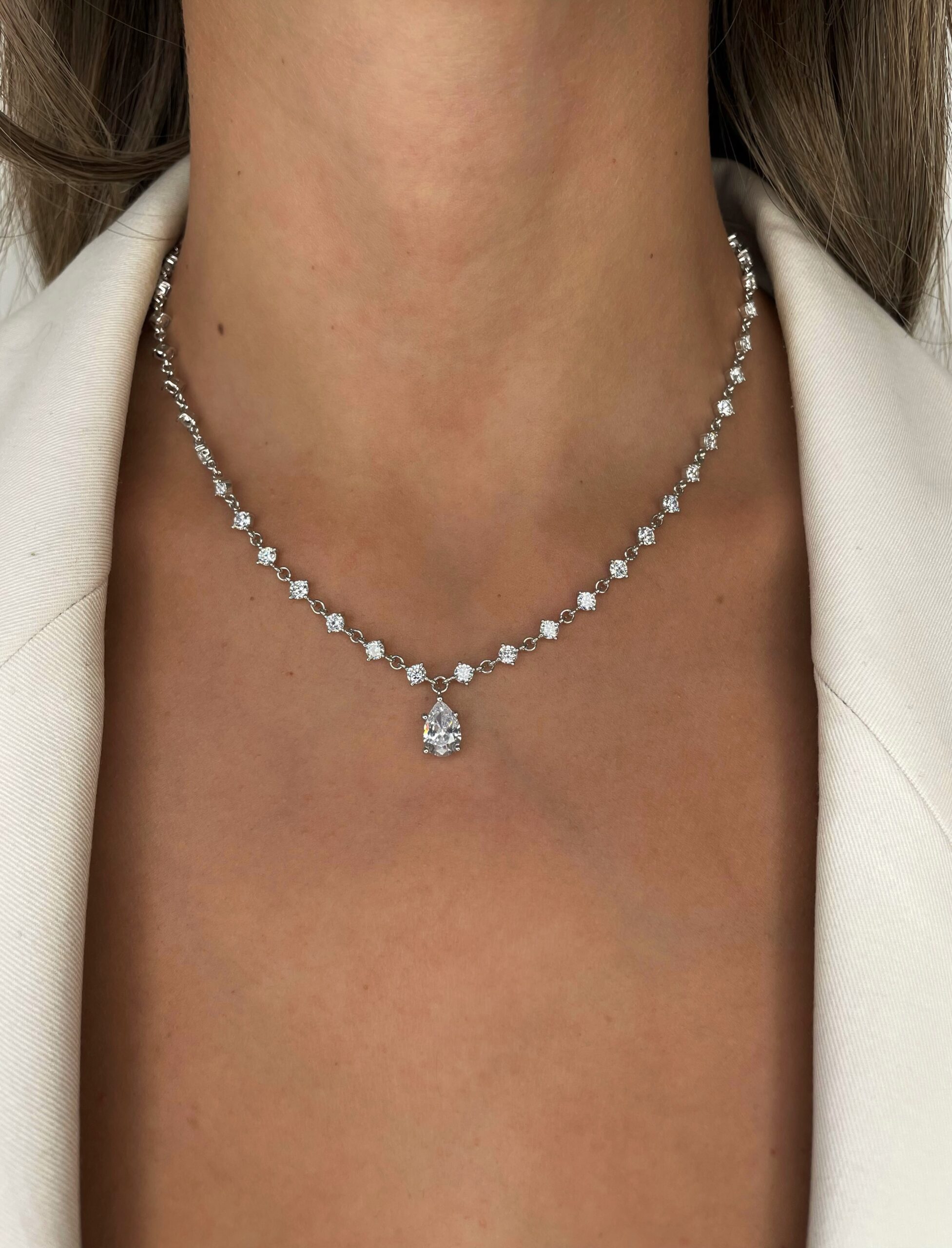 שרשרת יהלומים מעוצבת בתוספת יהלום טיפה